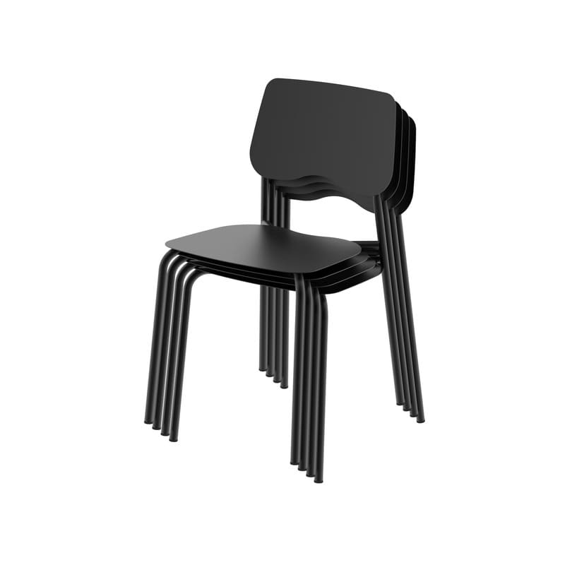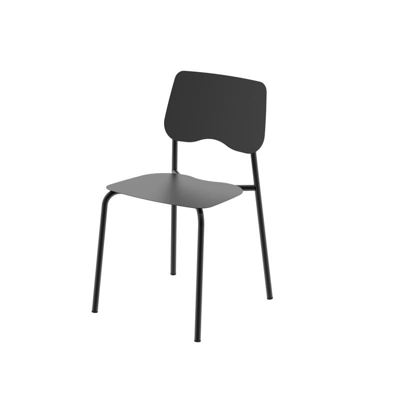 La silla Roma presenta una estructura de caño redondo y asiento y respaldo de chapa, lo que le otorga un diseño elegante y versátil apto para su uso en interiores y exteriores.