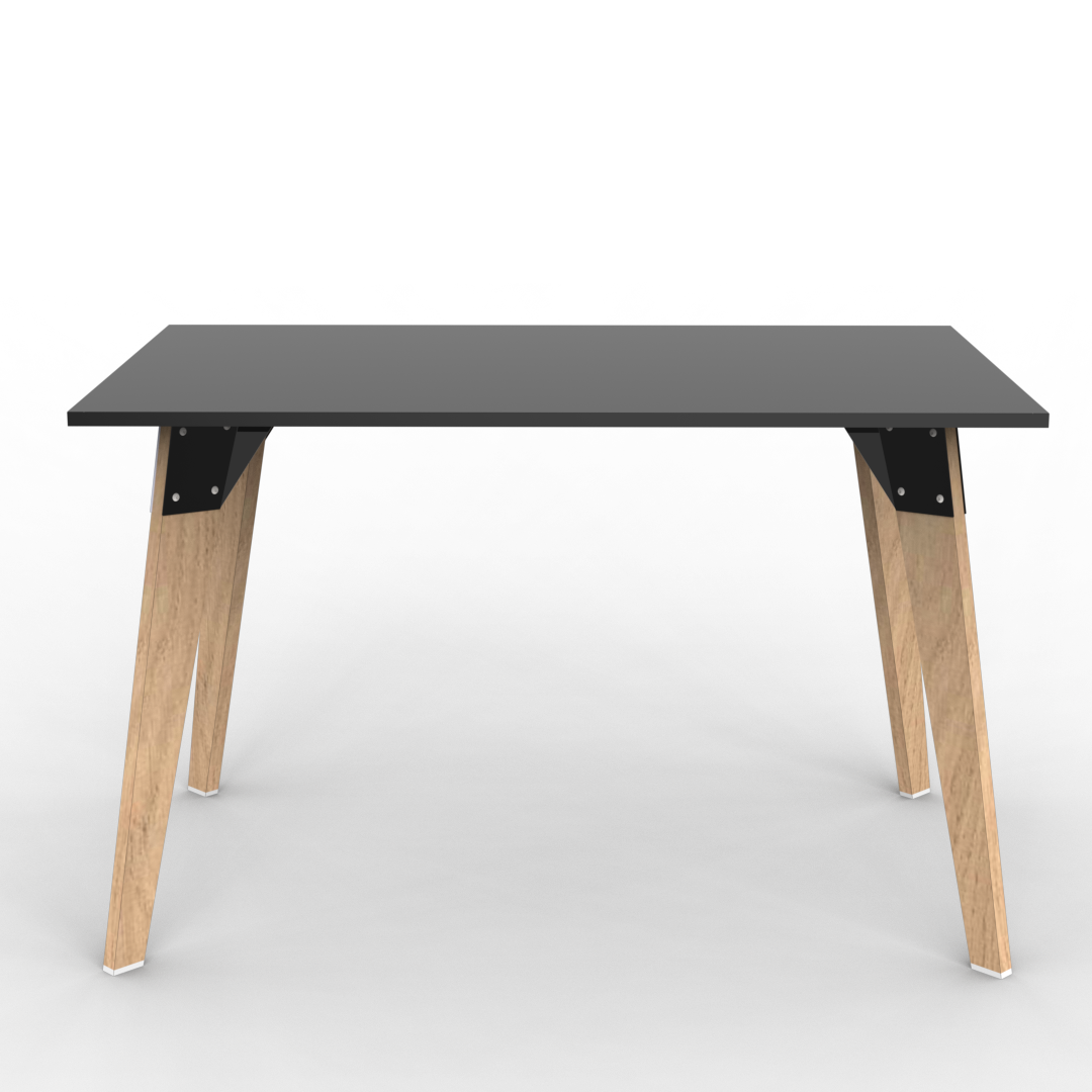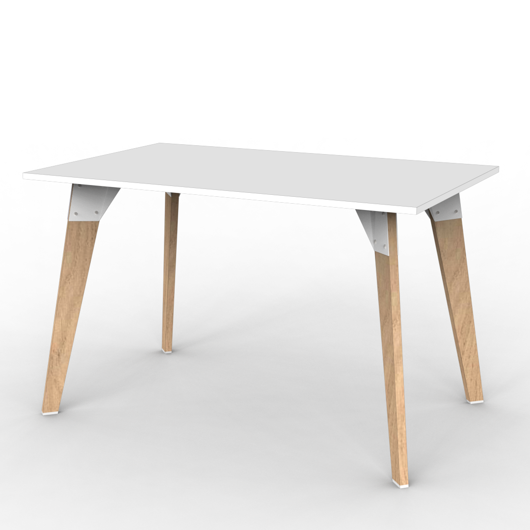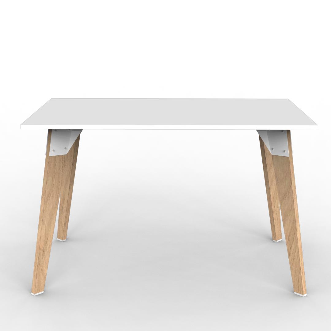 El diseño está compuesto por una tapa y patas de melamina que caen de manera inclinada hacia el suelo dando así una estética diferente.