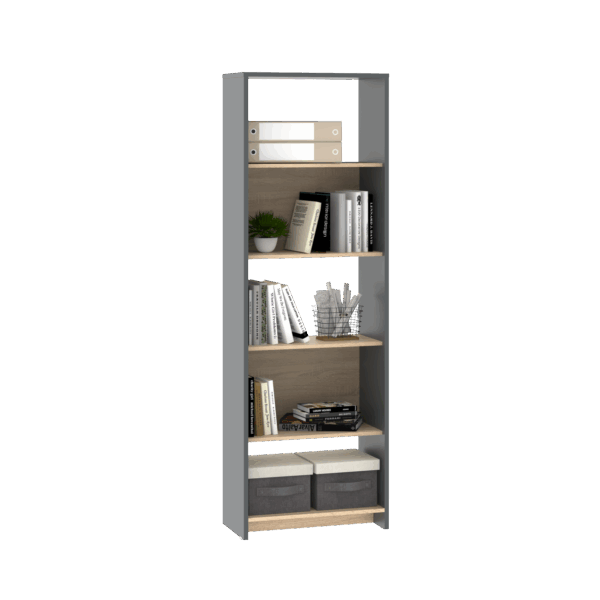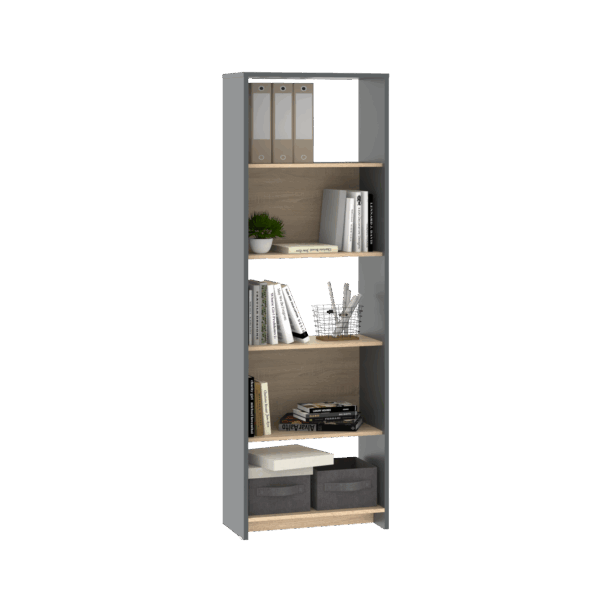 Está disponible en dos colores: Grigio y Roble Bardolino. Estas opciones de color no solo añaden estilo a su entorno, sino que también se integran armoniosamente en la decoración de su hogar u oficina. Con su diseño atractivo y colores elegantes, este mueble no solo es una solución de almacenamiento práctica, sino también un elemento decorativo que aportará belleza y sofisticación a su espacio. Esta bibliotaca viene desarmada y preparada para ensamblar de manera rápida y simple, por lo que dentro de la caja tenemos los correspondientes instructivos.