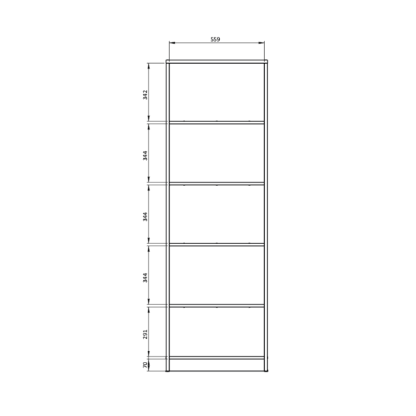 La biblioteca de la línea Niza es una amalgama perfecta de funcionalidad y estilo. Ofrece un generoso espacio de almacenamiento distribuido en cinco estantes, de los cuales dos están diseñados específicamente para libros, incorporando fondos que evitan que estos se caigan. Los restantes estantes se presentan como opciones ideales para almacenar diversos objetos y también para fines decorativos. Este mueble está diseñado con una unidad de melamina de 15mm encajada en una estructura en forma de “U” de melamina de 18mm.