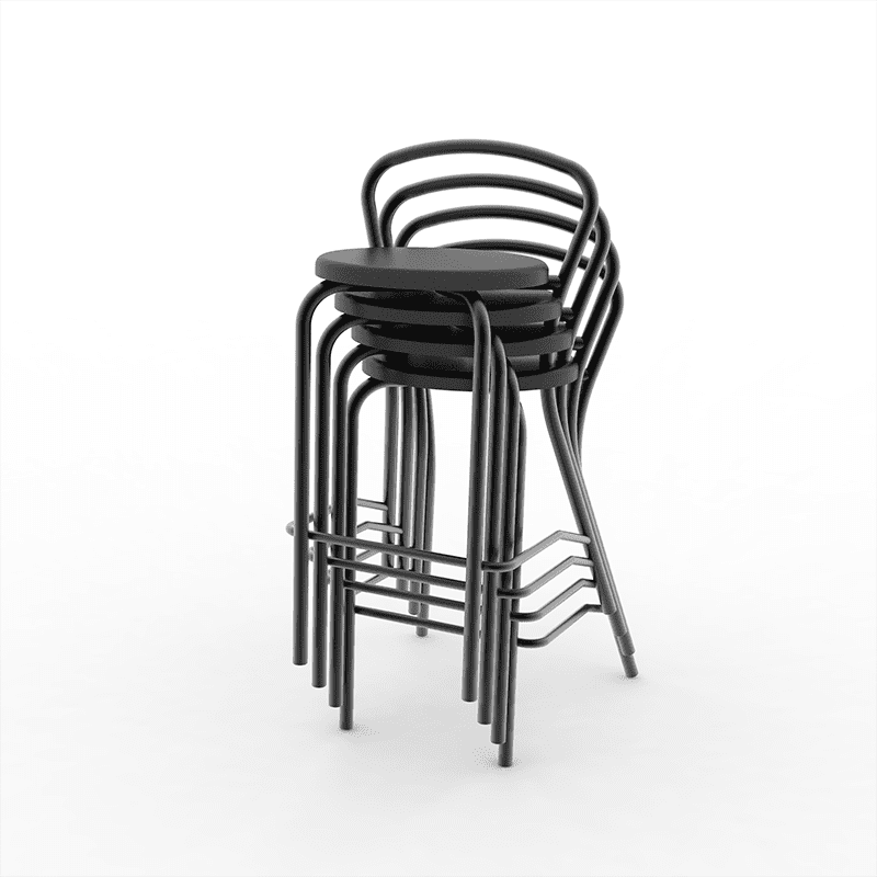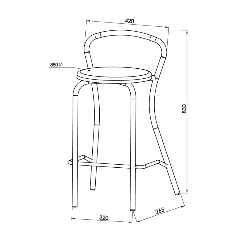 La estructura de este producto está desarrollada de caño redondo y su asiento tapizado está recubierto con cuerina sintética.