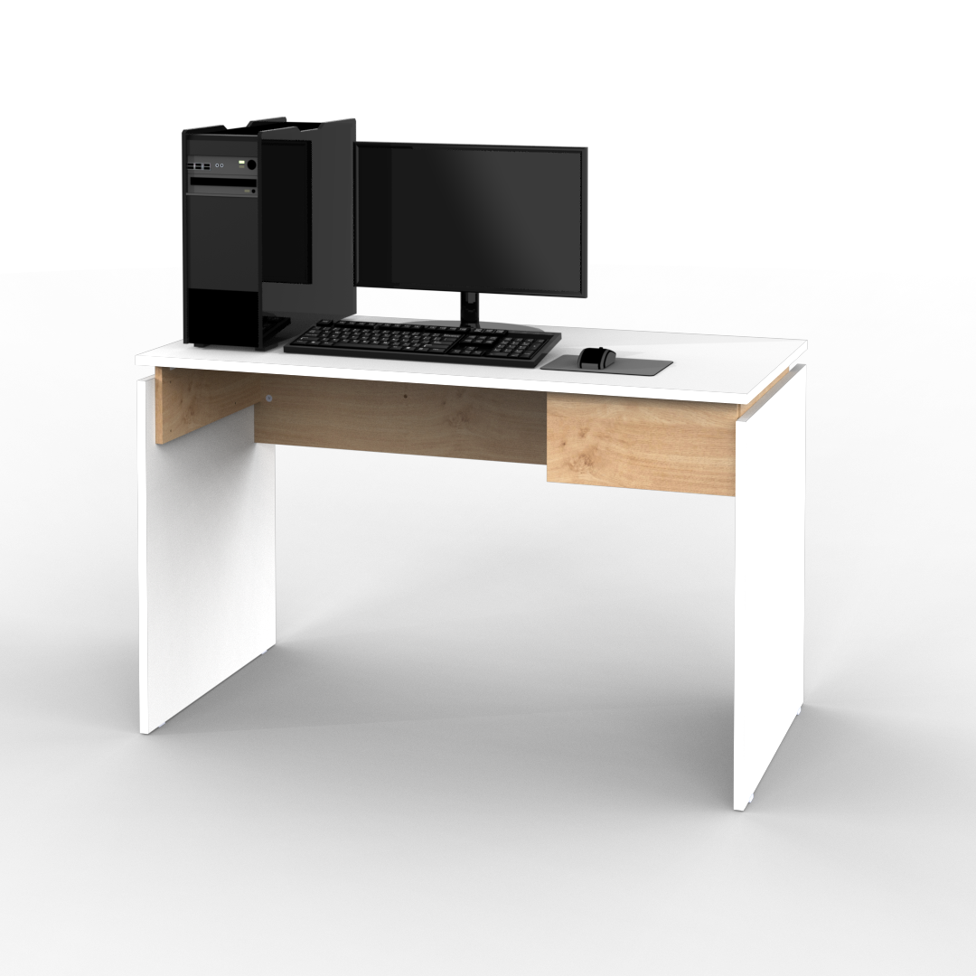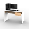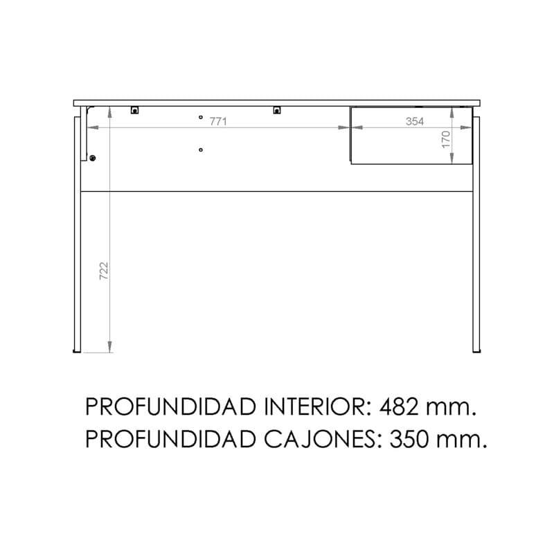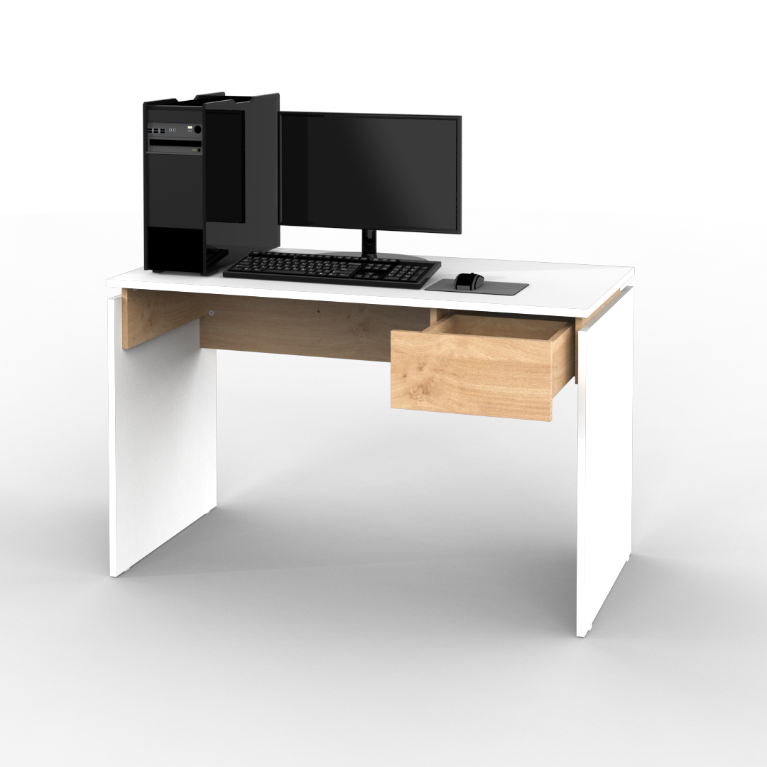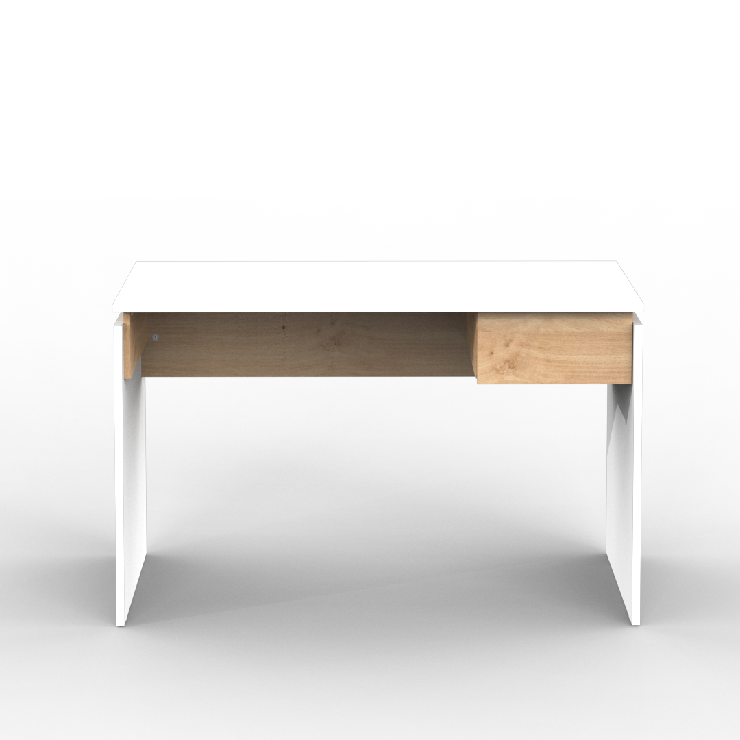 Es una mesa de trabajo de diseño sencillo, minimalista y funcional, el cual posee un cajon de buena capacidad de almacenaje acorde a un escritorio. Es un mueble moderno el cual crea un ambiente de trabajo ideal en donde no lo había. Este mueble viene desarmado y preparado para ensamblar de manera rápida y simple, por lo que dentro de la caja tenemos los correspondientes instructivos