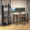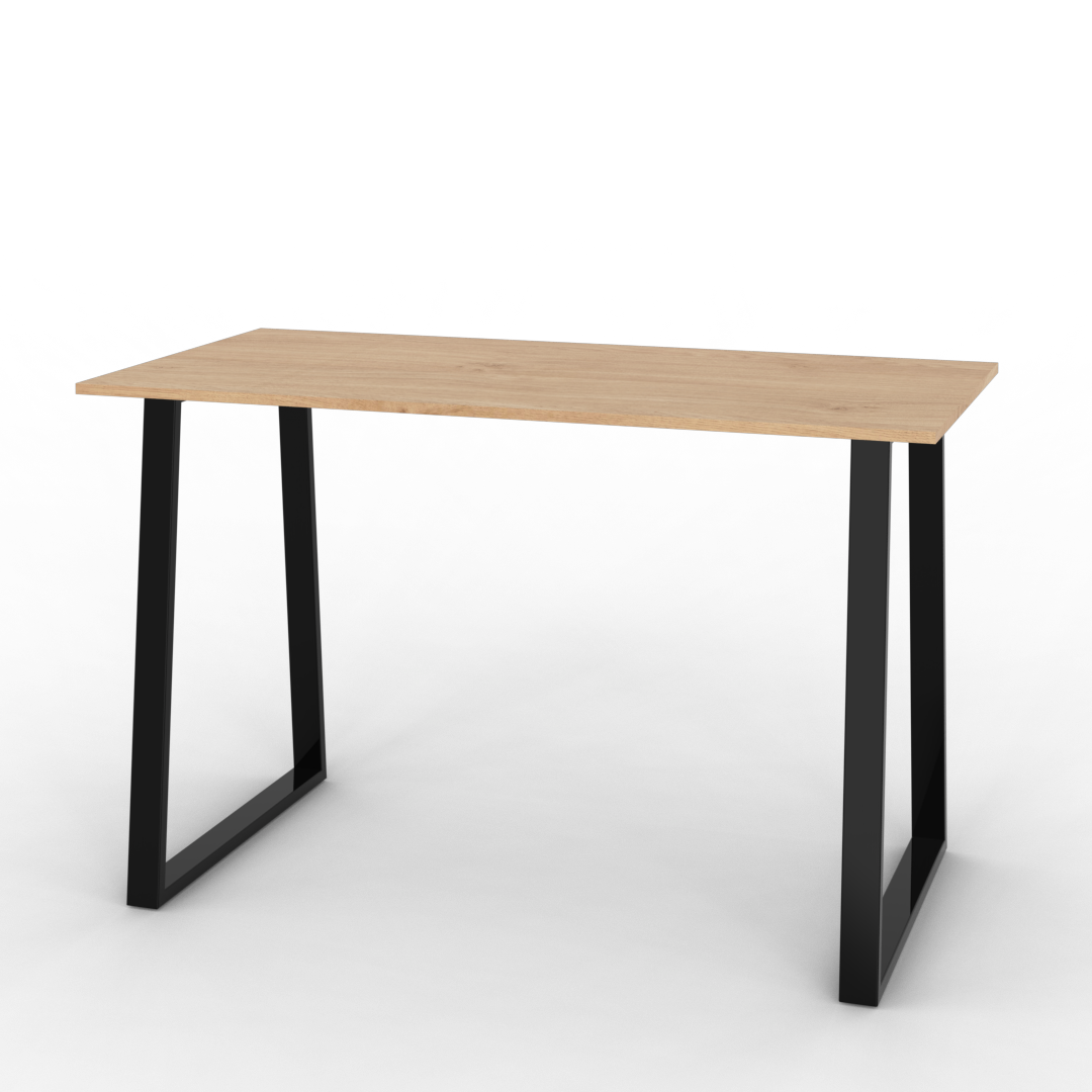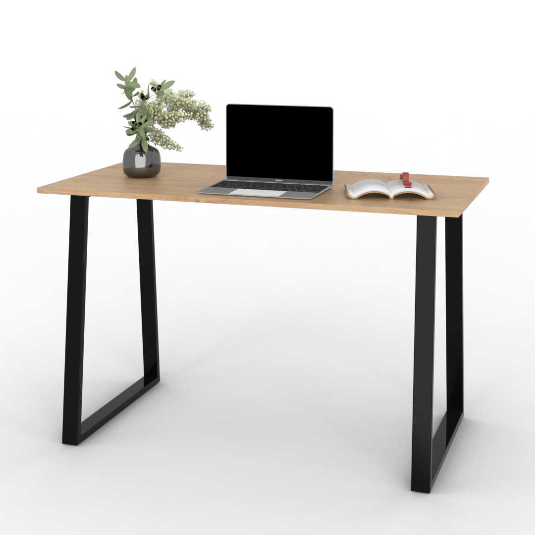 Este escritorio es un producto de la línea moderna, logrado por su simplicidad y por su diseño. El mismo está compuesto por una tapa de melamina color bardolino y dos patas de caño de color negro con un ángulo de 85º que le da una visión moderna.