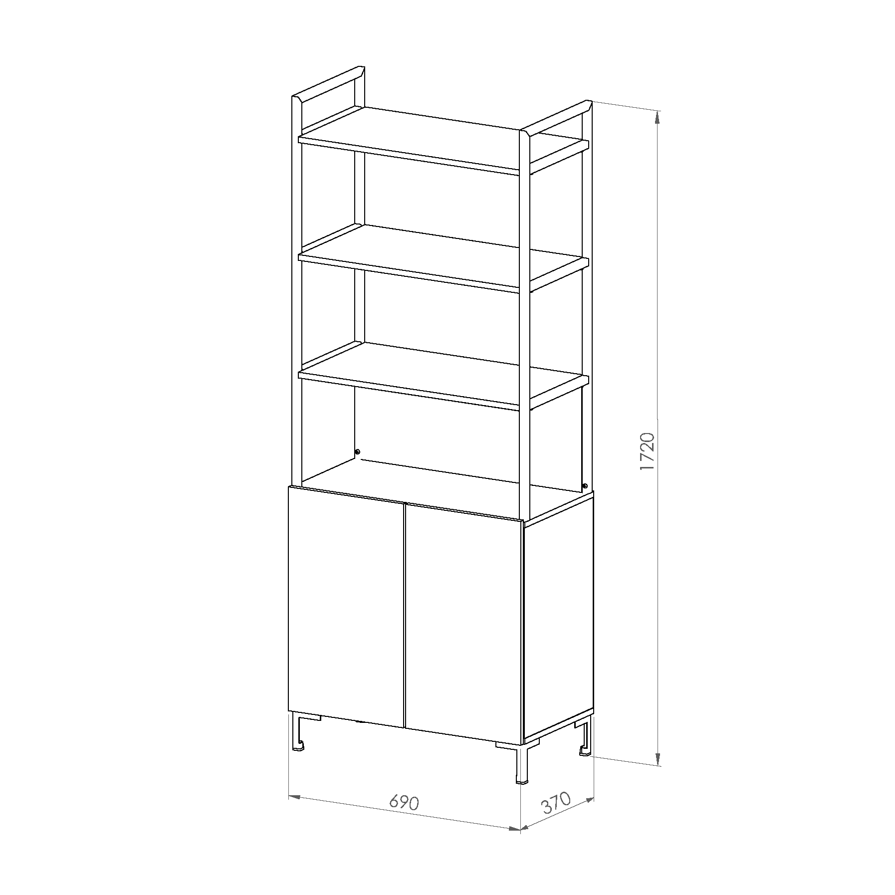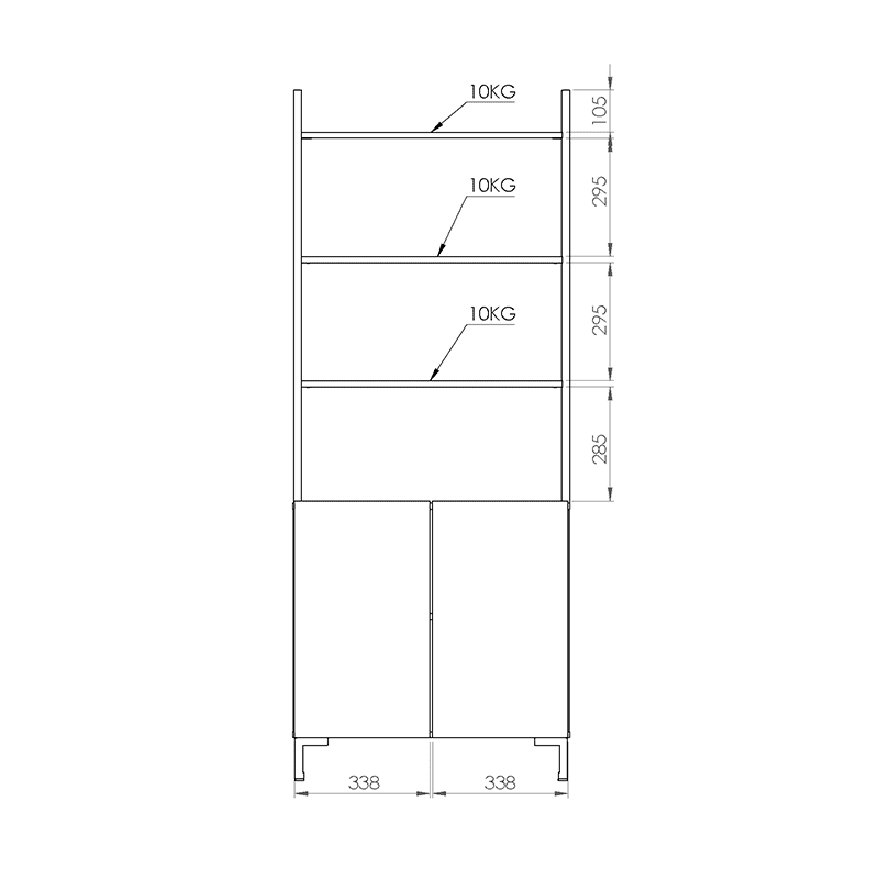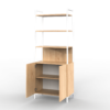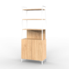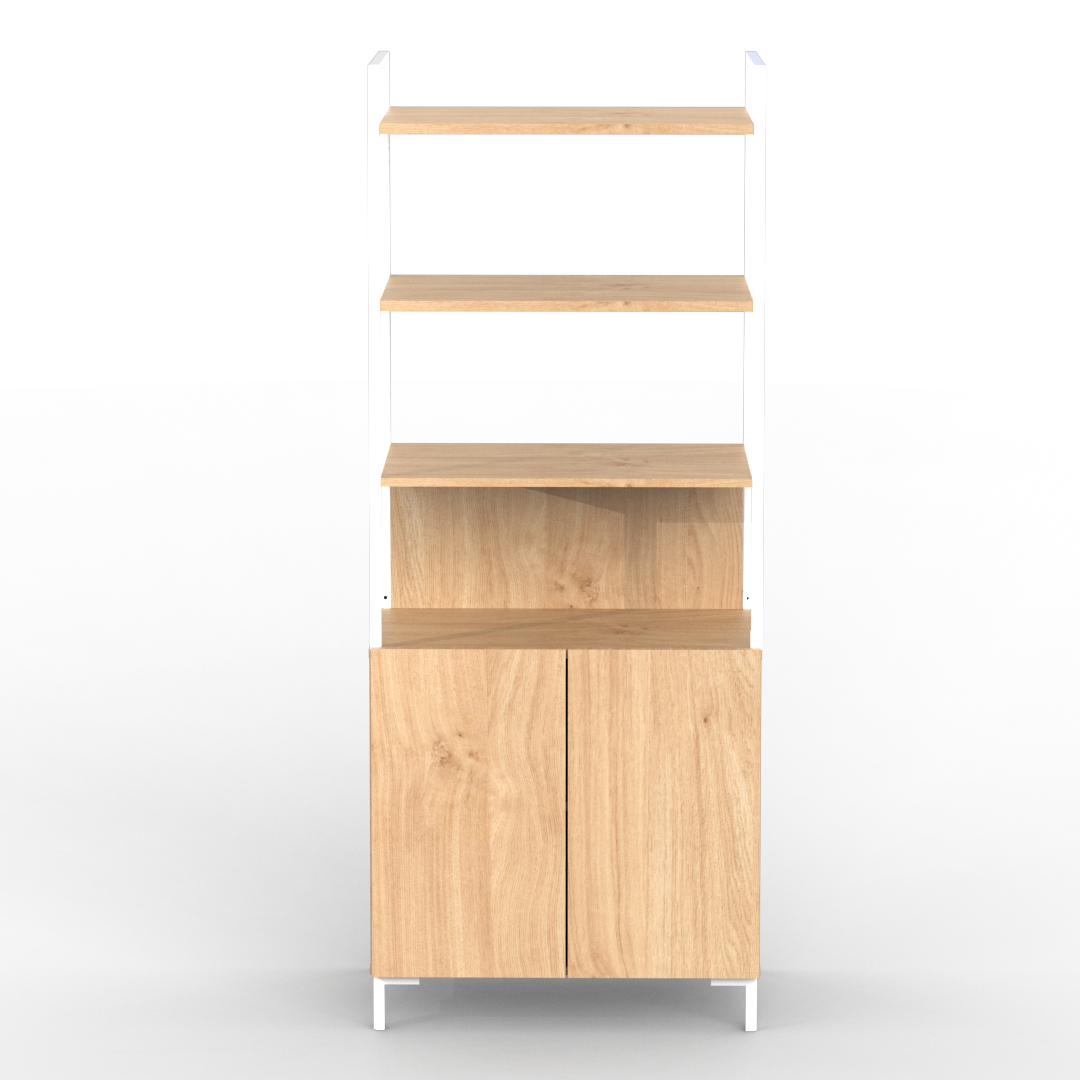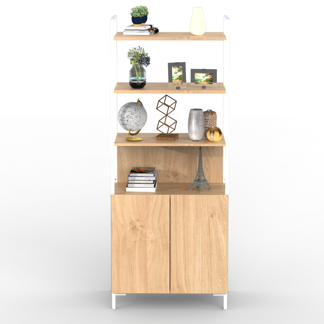 La estantería de la línea Oslo se caracteriza por su diseño minimalista, cuenta con un cuerpo principal de melamina. Con tres estantes y una división inferior con dos puertas otorgando así una buena capacidad de almacenamiento.