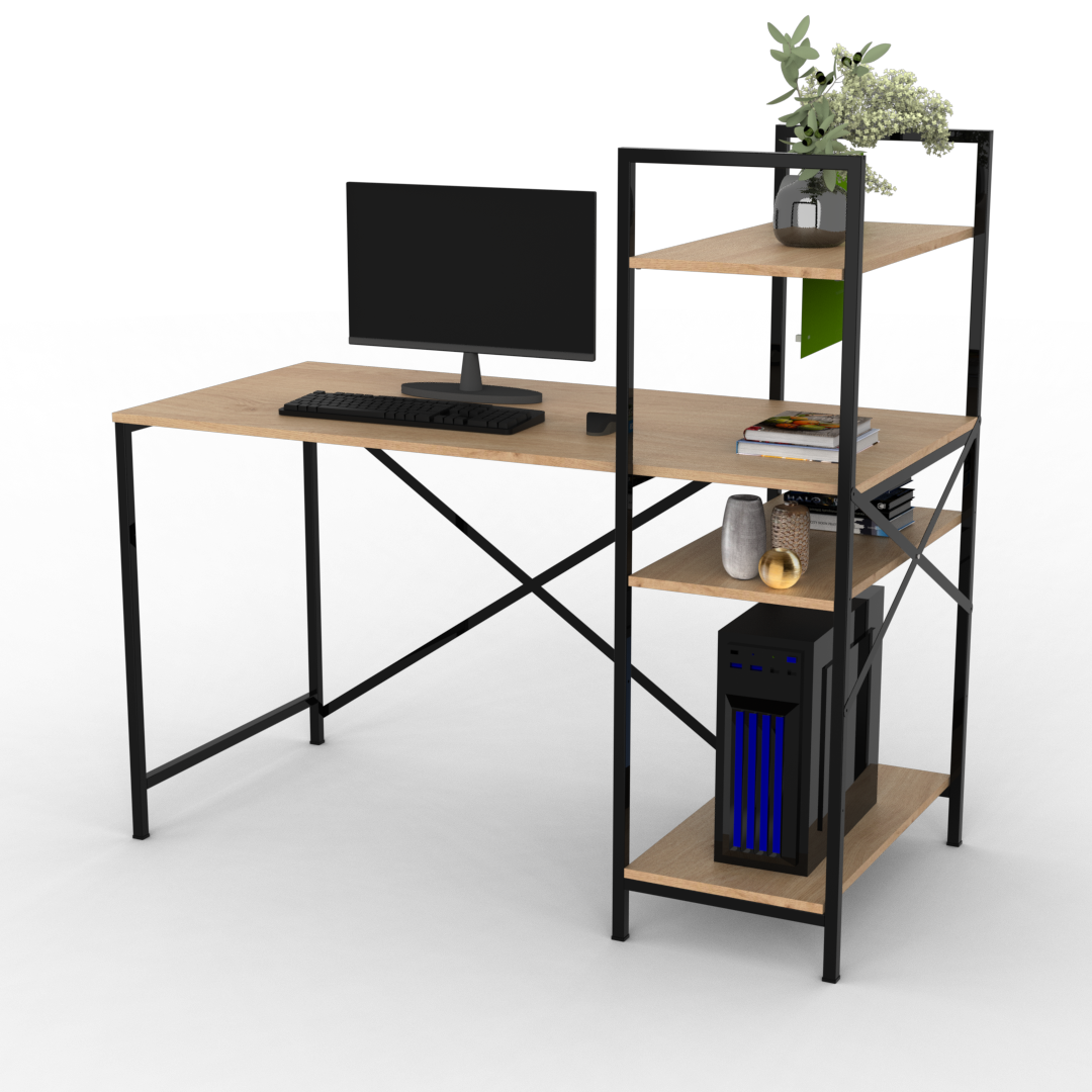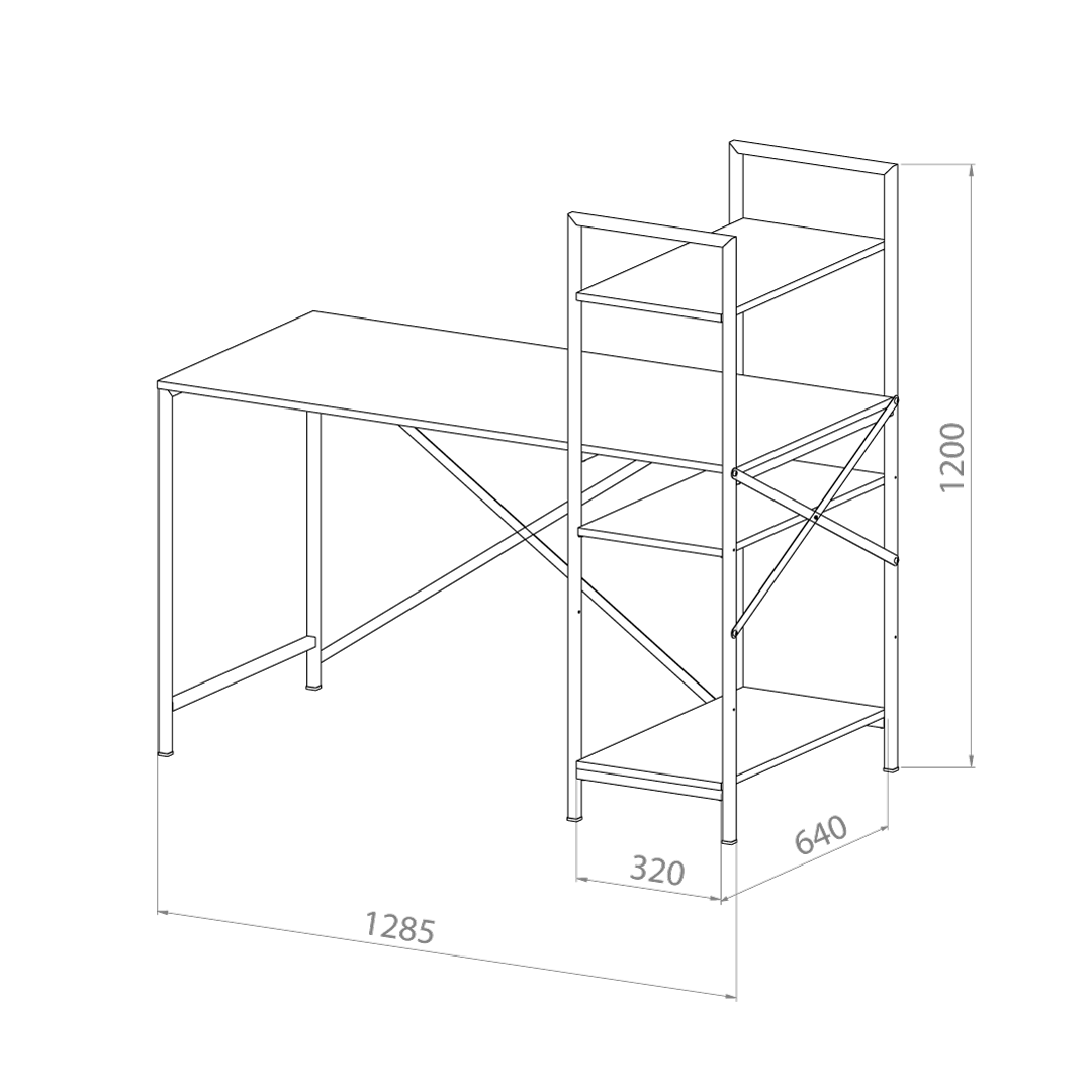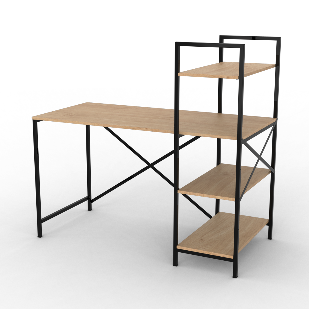 Este mueble es un escritorio simple de grandes dimensiones, con una biblioteca vertical en el lateral.