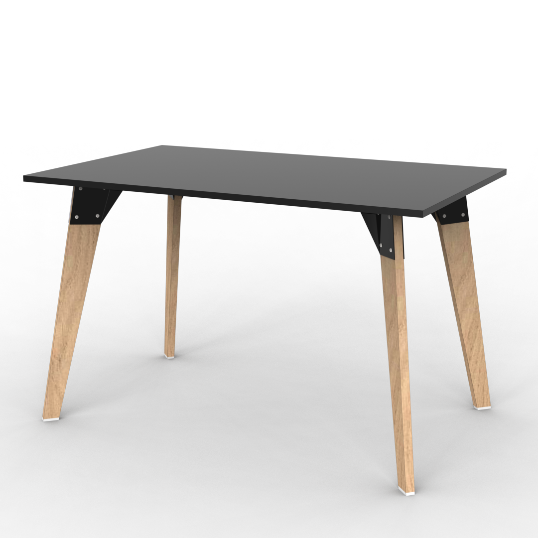 El diseño está compuesto por una tapa y patas de melamina que caen de manera inclinada hacia el suelo dando así una estética diferente.