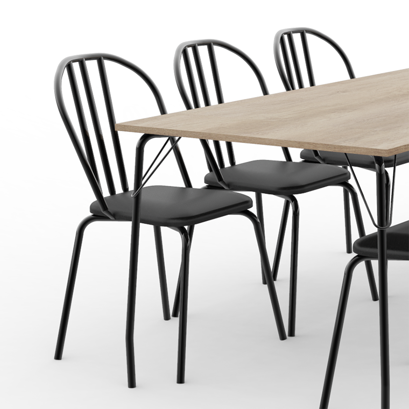 La silla Brooklyn es un mobiliario de estilo industrial, que se caracteriza por utilizar una estructura de caño a la vista como respaldar y su asiento tapizado está recubierto con cuerina sintética.