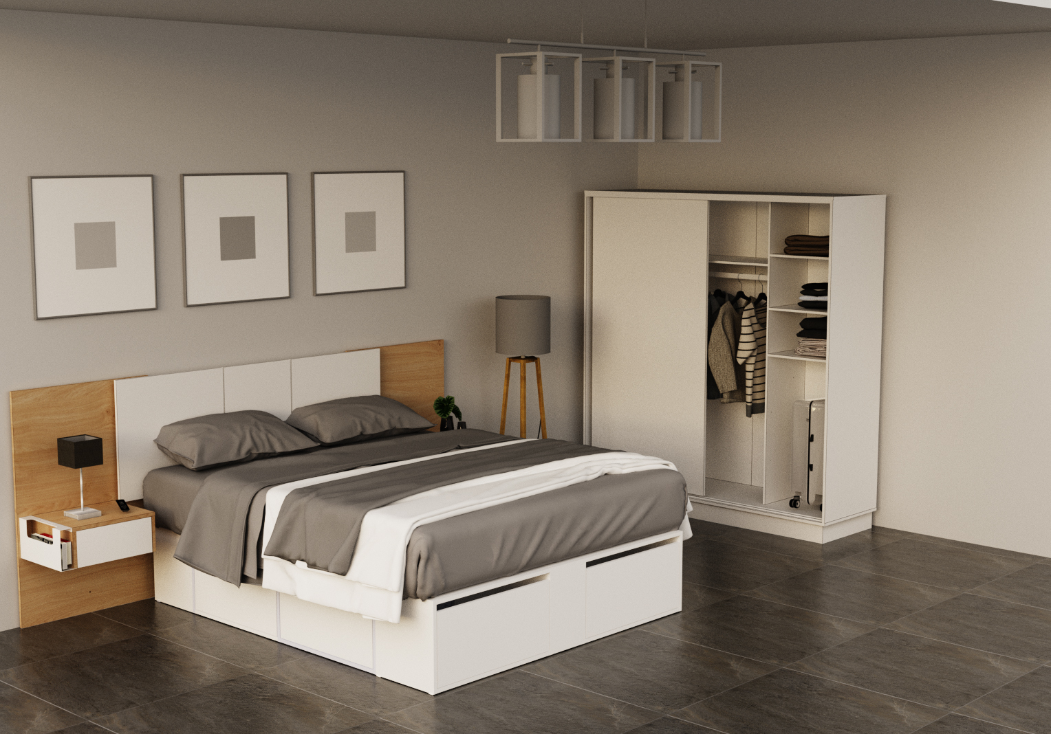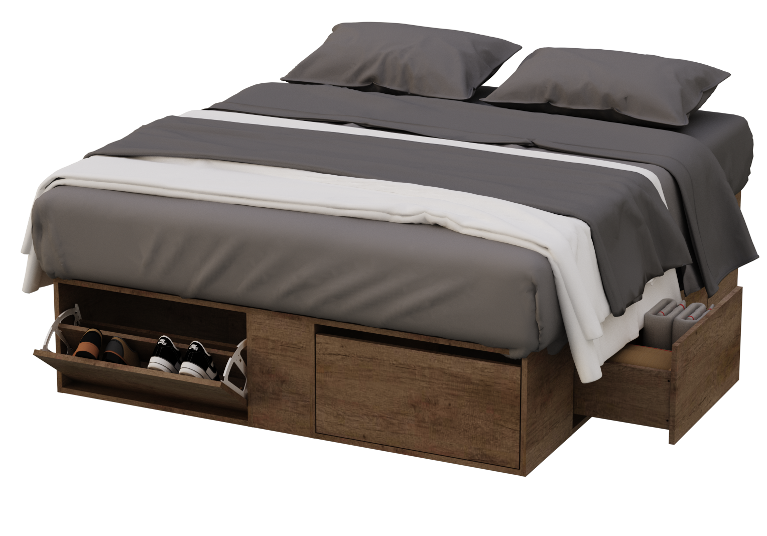 La cama moderna extensible es una cama caracterizada por su versatilidad y practicidad. Fabricada con materiales resistentes y de calidad, su diseño elegante combina líneas limpias con una estructura robusta que garantiza estabilidad y durabilidad. Presenta un mecanismo de armado que permite ajustar su tamaño, ofreciendo la posibilidad de ampliar su anchura de 140 a 160 centímetros, lo que permite utilizar colchones tanto de tamaño estándar de 140 centímetros como de tamaño queen de 160 centímetros. Su almacenamiento compuesto por cuatro cajones y dos zapateros, la convierte en la cama ideal para optimizar el espacio y mantener el orden de la habitación. Esta cama viene desarmada y preparada para ensamblar de manera rápida y simple, por lo que dentro de la caja tenemos los correspondientes instructivos. Lo podes encontrar en las combinaciones de colores roble bardolino o blanco.