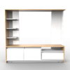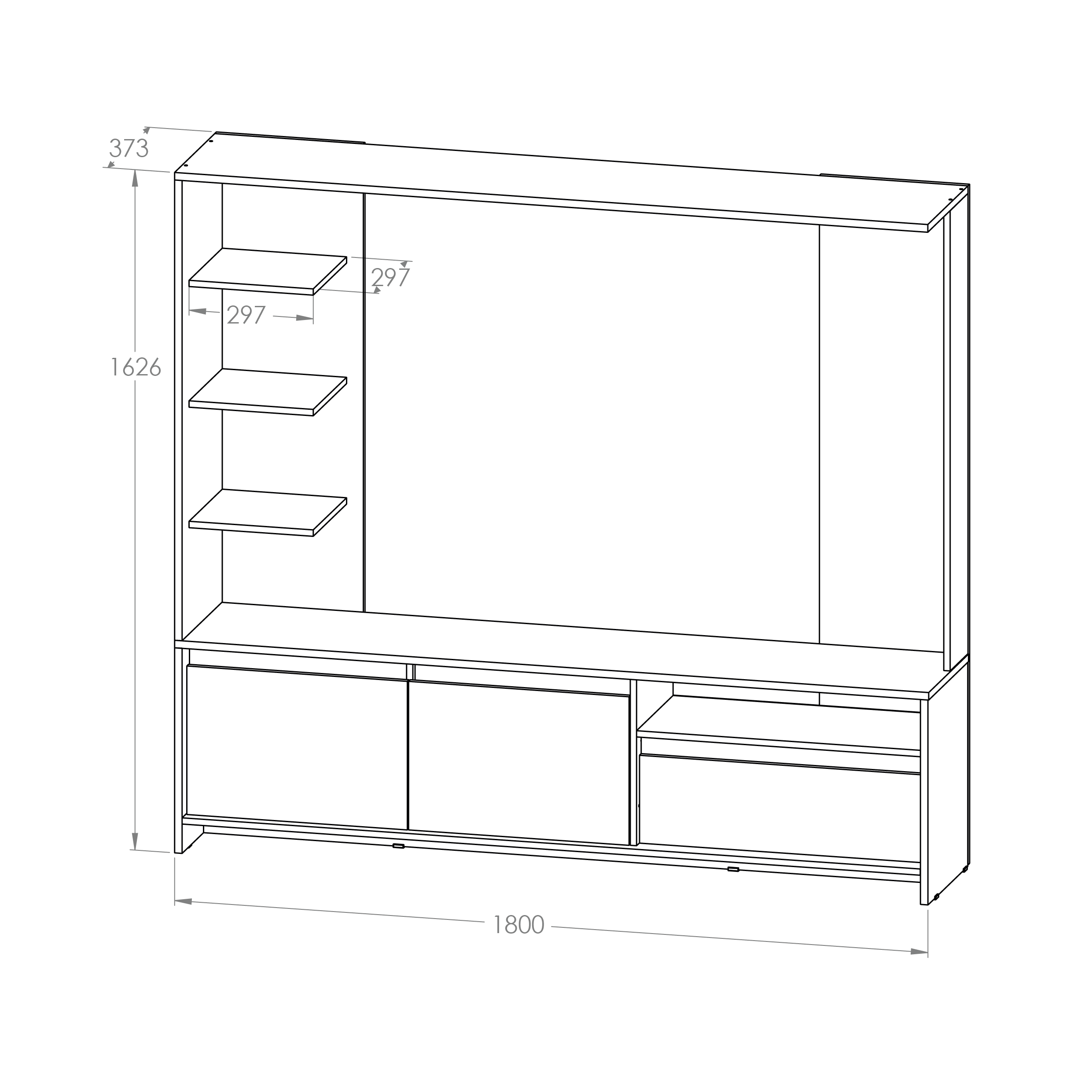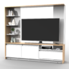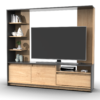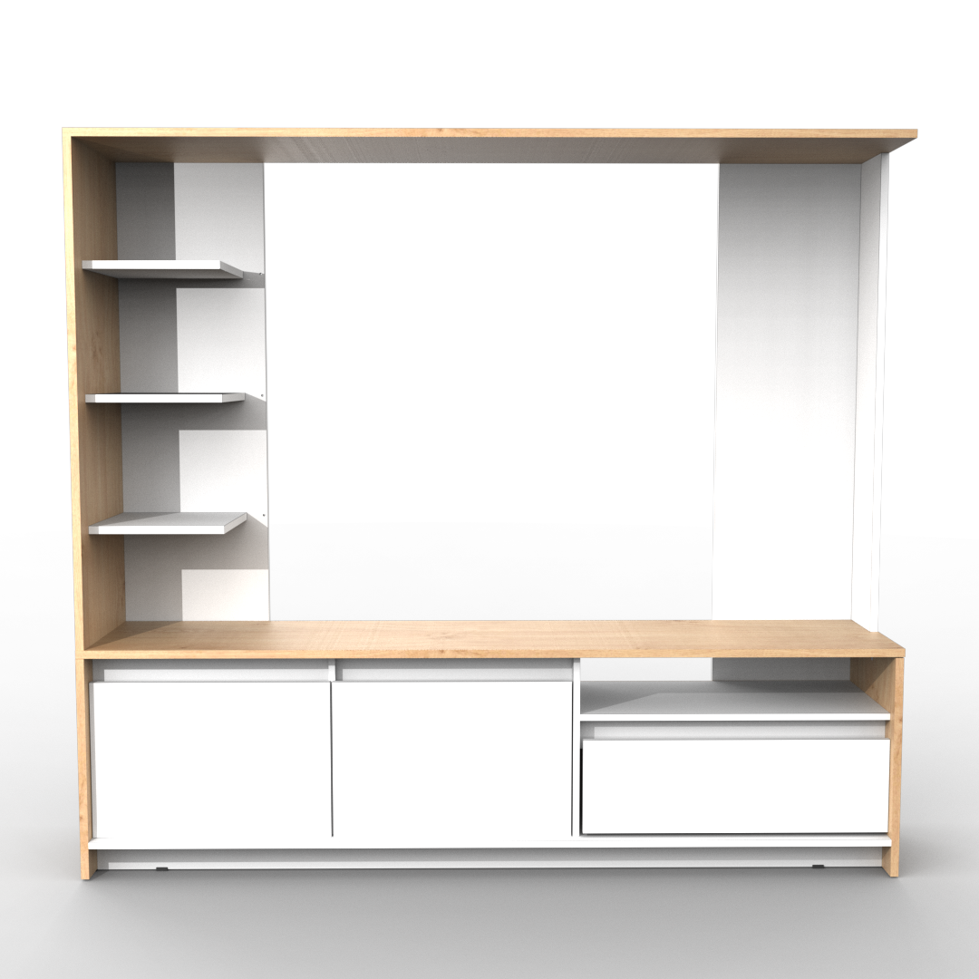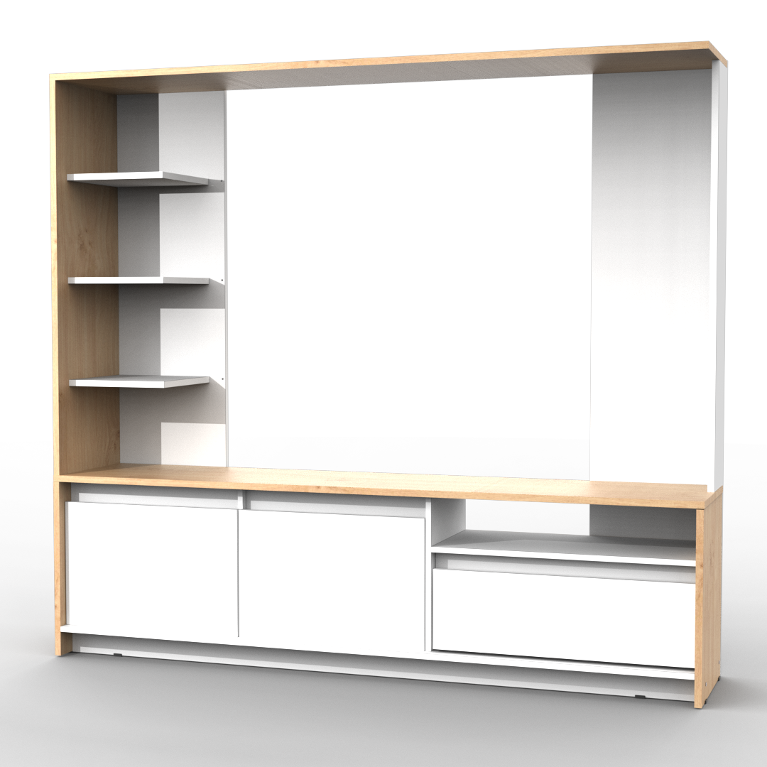 El Centro de entretenimiento, de la línea Niza, se destaca por su diseño moderno. Las puertas y cajones se abren sin necesidad de tiradores. Este versátil mueble ofrece siete espacios de almacenamiento integrándose armoniosamente en la decoración del hogar. Disponible en la combinación de Gris y Roble Bardolino.