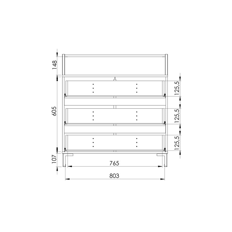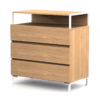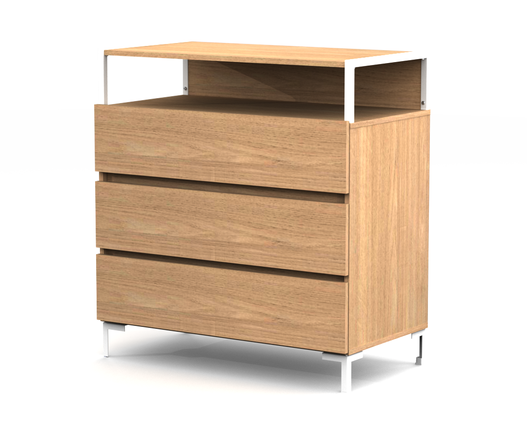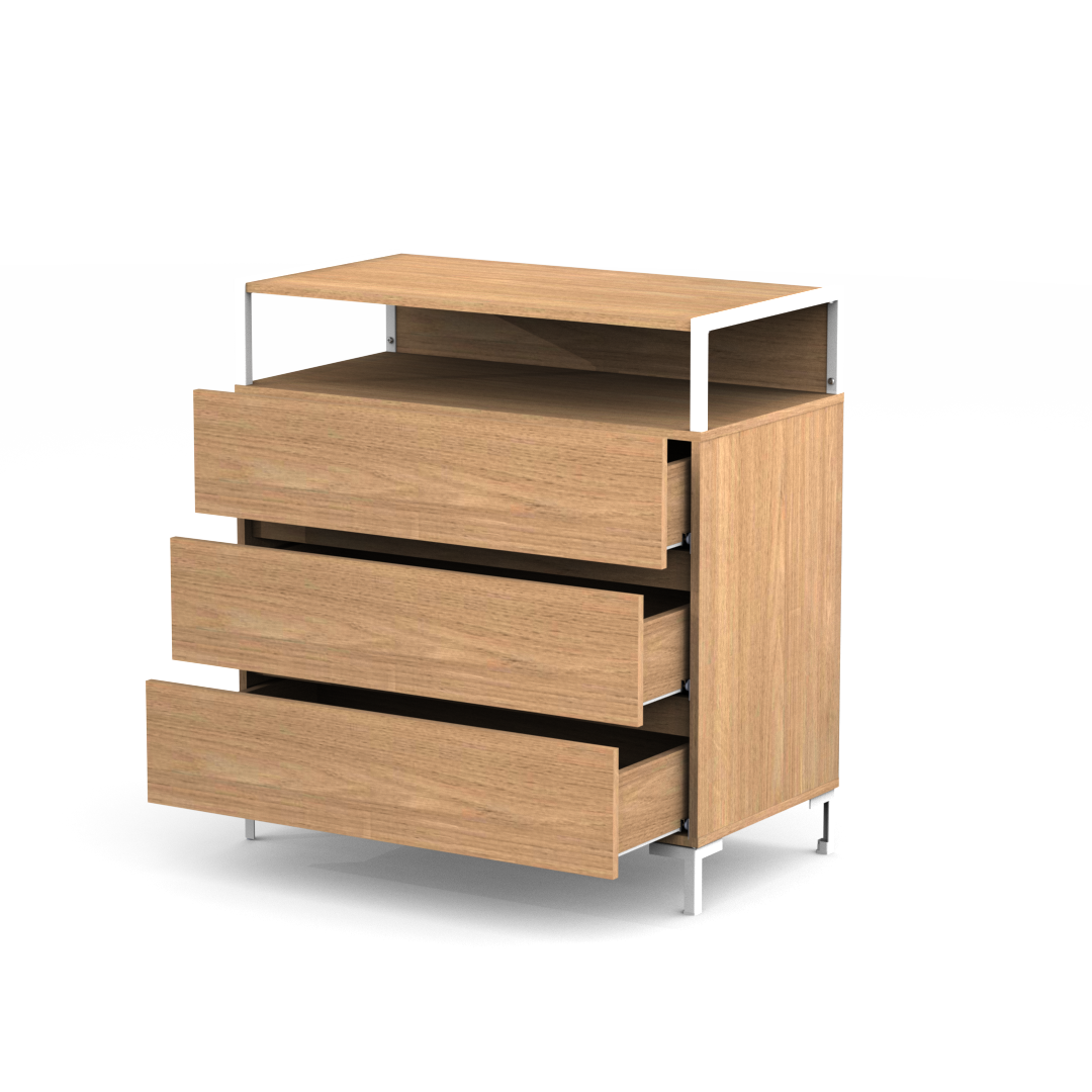 Construida con materiales de alta calidad este mueble cuenta con tres cajones sin tirador que ofrecen un gran espacio de almacenamiento para ropa y un estante sobre la parte superior del mueble.