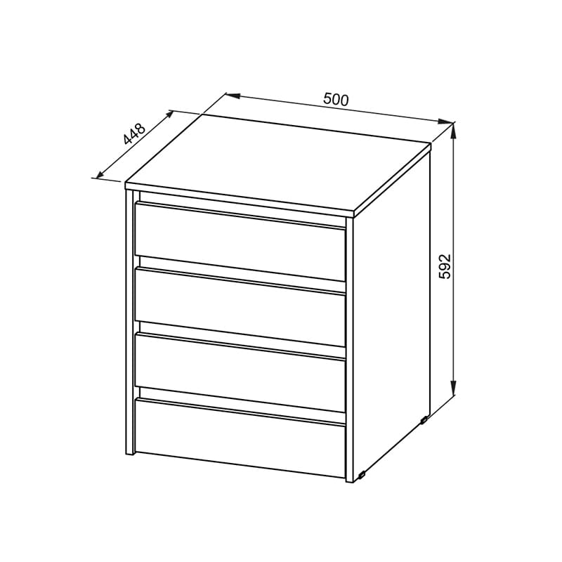 La cajonera de cuatro cajones es un producto construido en melamina de alta resistencia con una excelente terminación que se puede encontrar en color Venecia o Roble Bardolino.