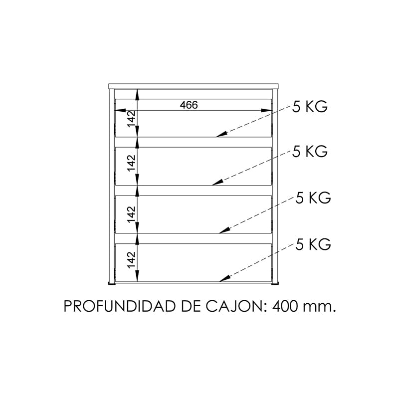 Este mueble cuenta con correderas metálicas lo que permite un mejor deslizamiento de los cajones.