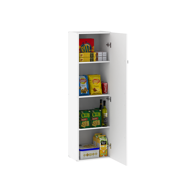 El despensero vertical de una sola puerta se caracteriza por su diseño simple, que permite ser utilizado en distintos ambientes.