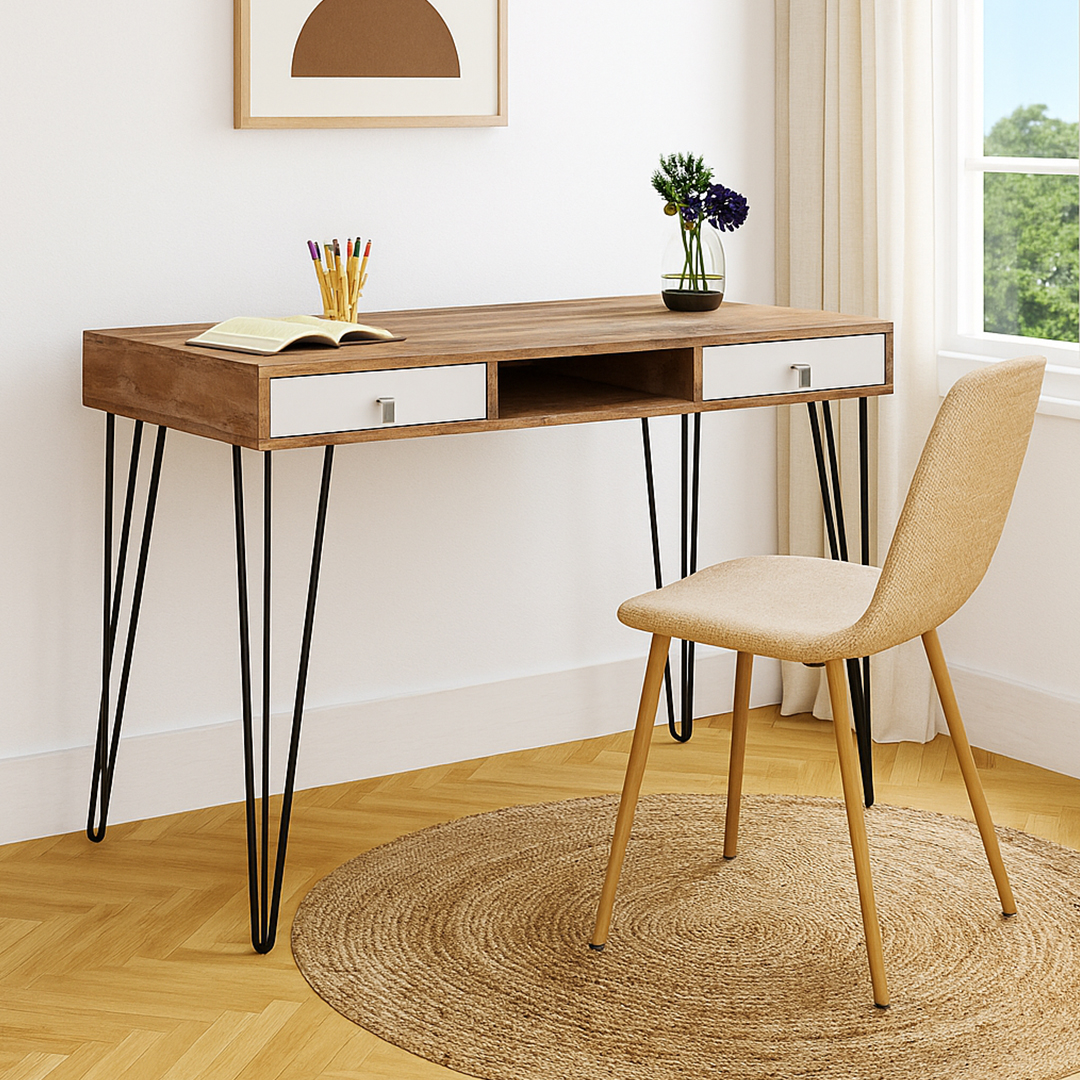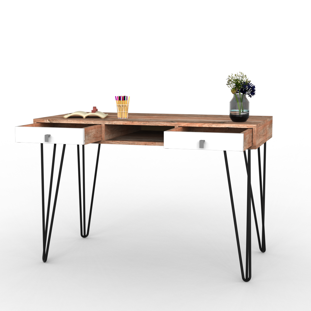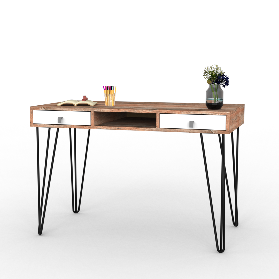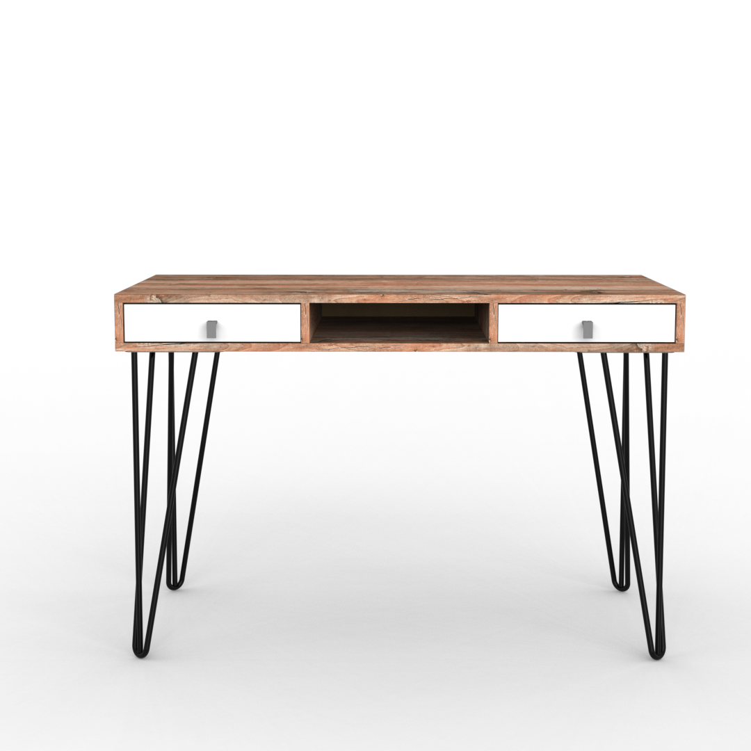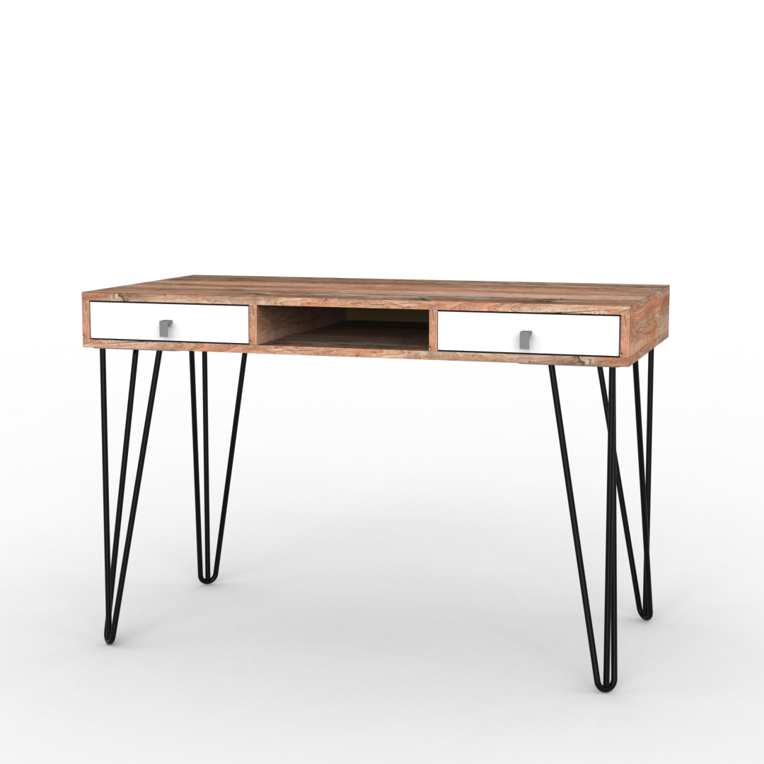 El escritorio de la línea industrial creara un nuevo enfoque de su hogar con una decoración donde el carácter urbano de estos materiales se reafirma exponiéndolos en su versión más natural. Siendo la presencia de la melamina símil madera combinada con metal el contrapunto perfecto para aportar un aspecto rústico.
