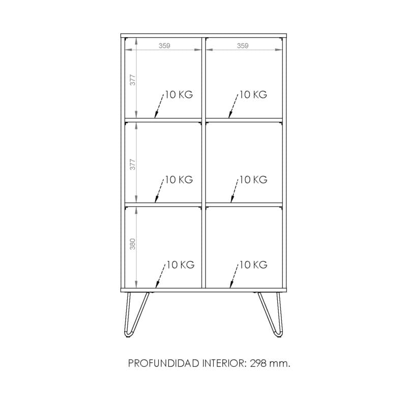 Este mueble posee seis divisiones abiertas y está pensada