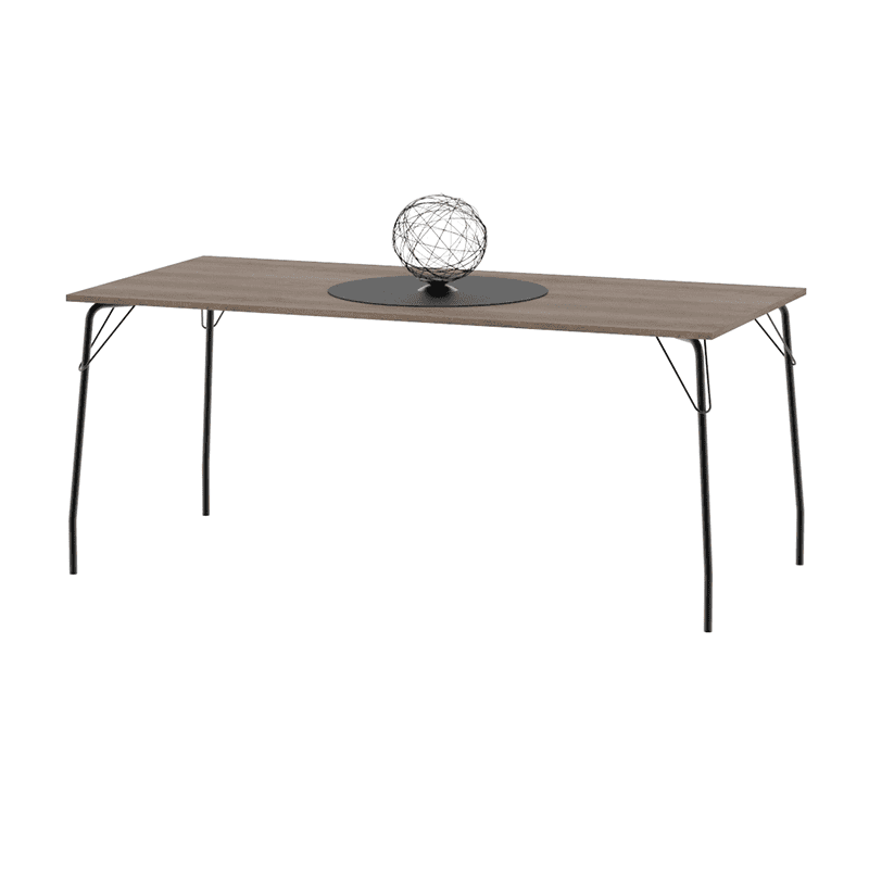 La mesa Brooklyn al igual que su versión más pequeña tiene un estilo industrial, robusta y con líneas limpias, es perfecta para todo tipo de espacios. Construida con patas metálicas y un tablero de aglomerado revestido.