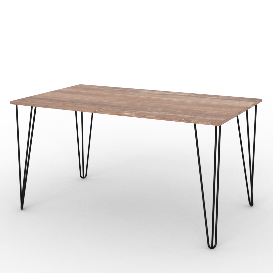 La mesa de la línea industrial es un producto logrado mediante la combinación de melamina símil madera color Atakama y las patas negras de hierro maciza.