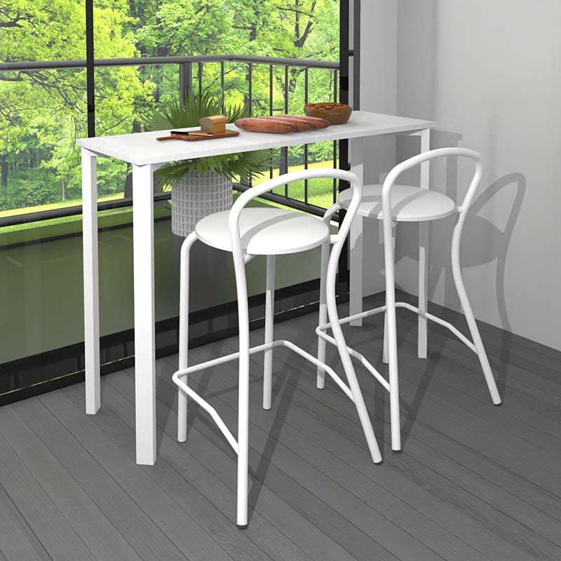 La barra desayunadora milano tiene un estilo moderno, con líneas simples, dentro de sus características destacamos sus patas metálicas con tubo de sección que no solo le aporta estética, sino que también resistencia, ideal para todo tipo de ambientes.