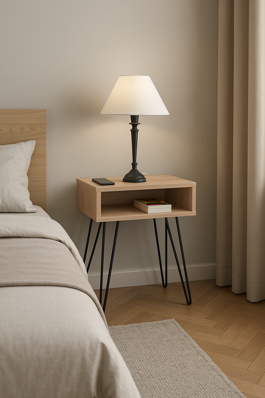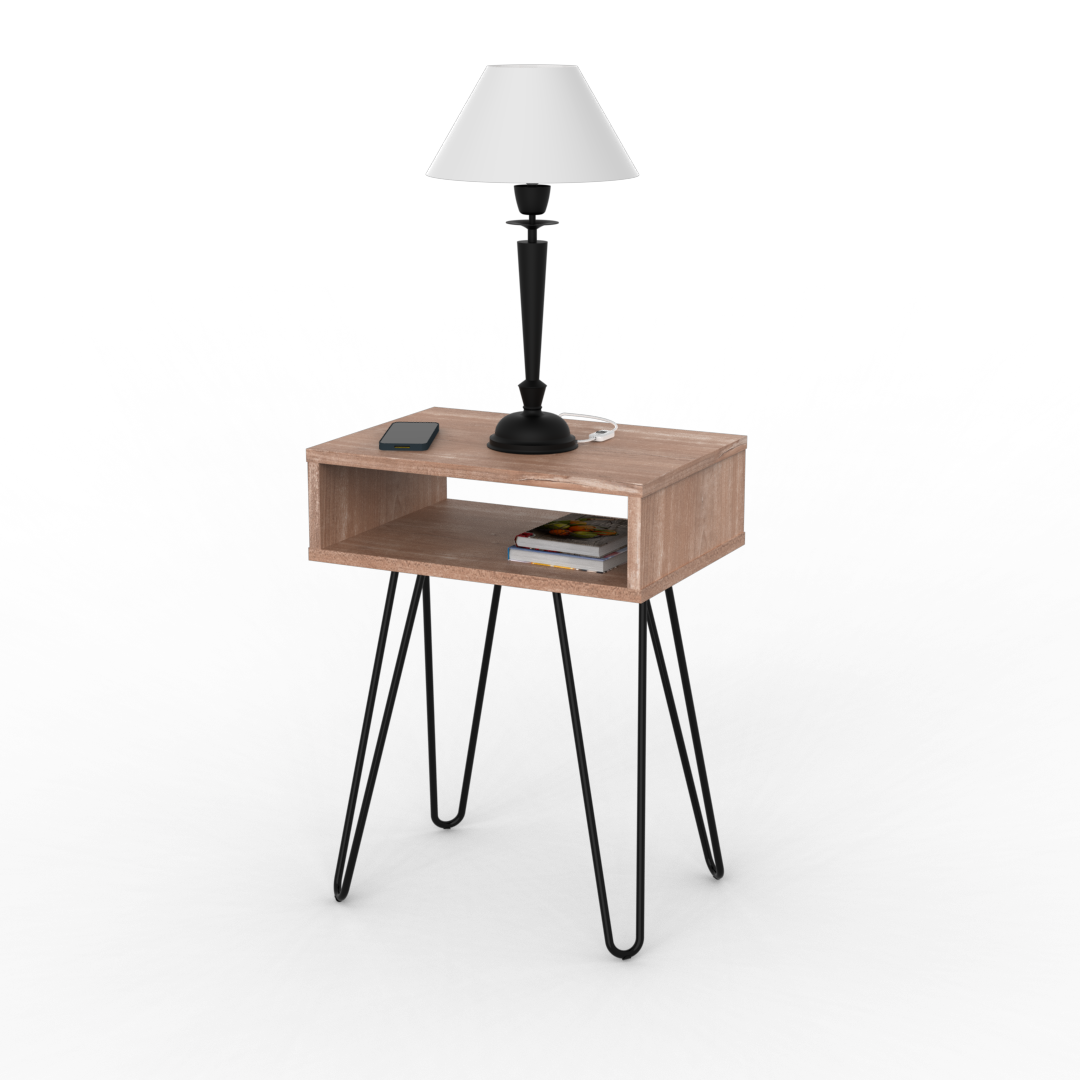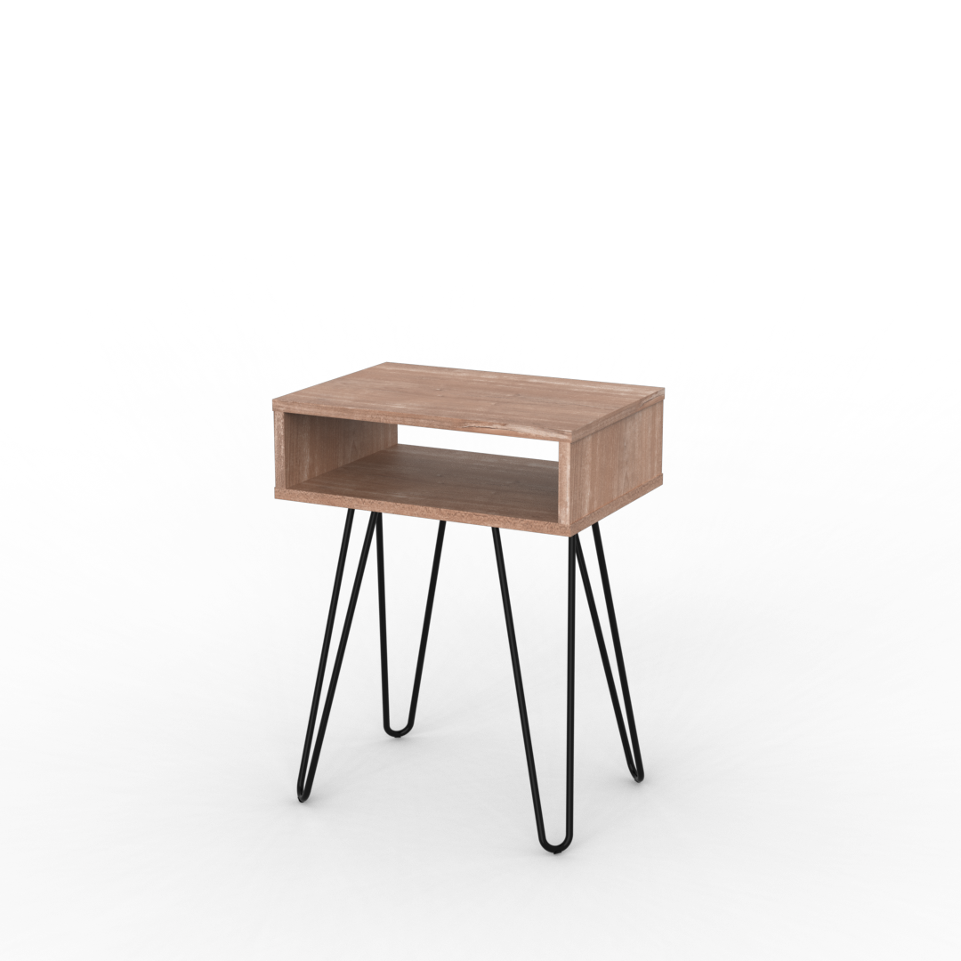 La mesa de luz es un producto de la línea industrial, este estilo originado en new york tiene un aspecto rustico logrado por su acabado.
