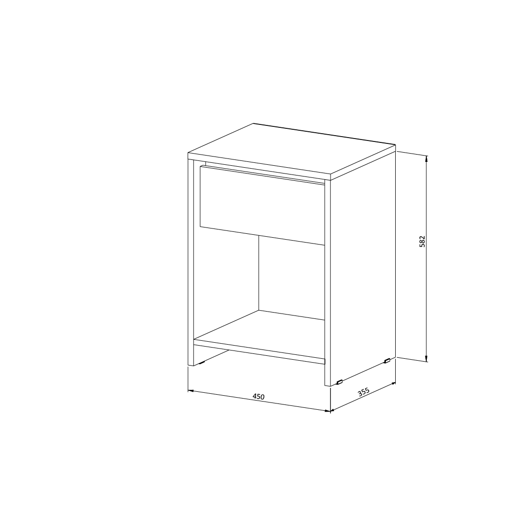 La Mesa de luz forma parte de la línea Niza, caracterizada por presentar una unidad de melamina de 15mm embutida dentro de una “U” de melamina de 18mm y una base elevada que da la sensación de que el mueble esta “volando”. Este mueble cuenta con tres espacios de guardado: un cajón pequeño, un estante superior y un espacio abierto inferior. Esta mesa viene desarmada y preparada para ensamblar de manera rápida y simple, por lo que dentro de la caja tenemos los correspondientes instructivos. Lo podes encontrar en las combinaciones de color Grigio/Bardolino.