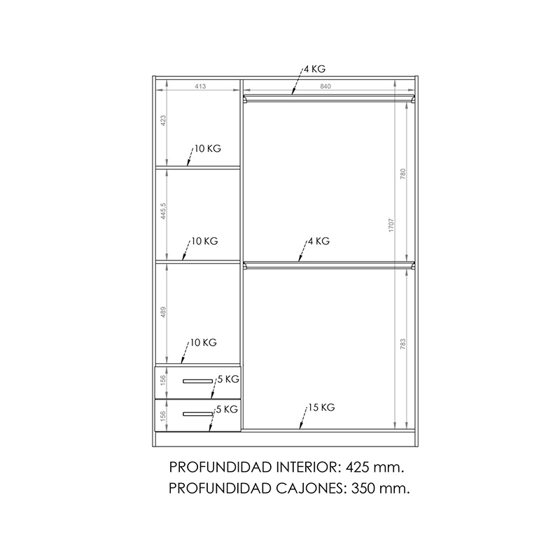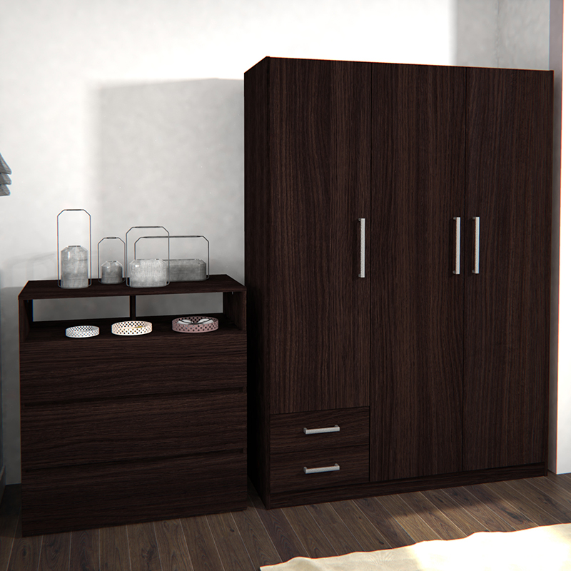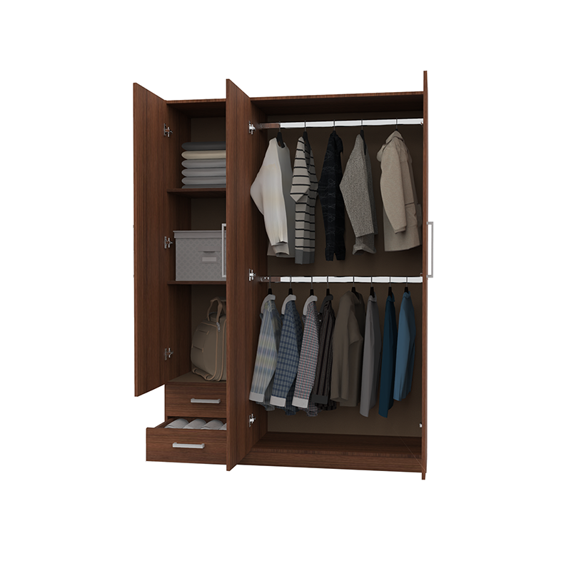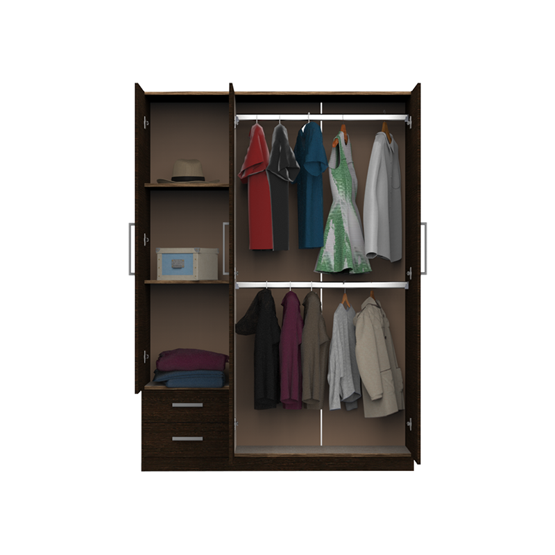 El mismo cuenta con dos cajones que son funcionales para guardar accesorios. Ademas en las dos puertas derechas cuenta con barral para colgar ropa proporcionando un amplio espacio de guardado