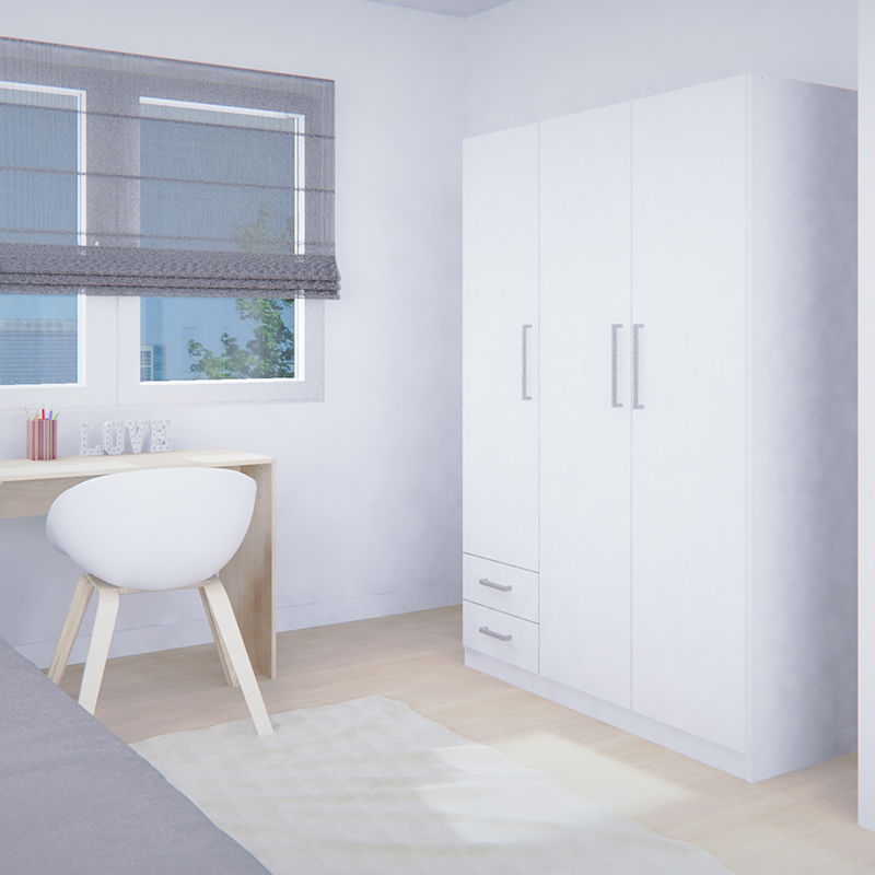 Este placar de tres puertas construido en melamina de 15 milimetros tiene un diseño simple compuesto por lineas rectas.