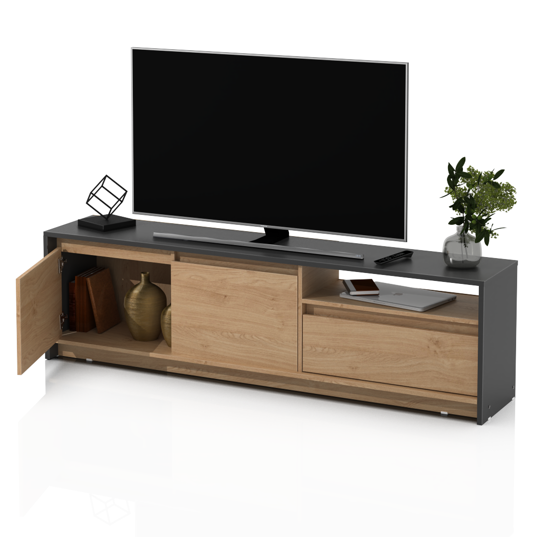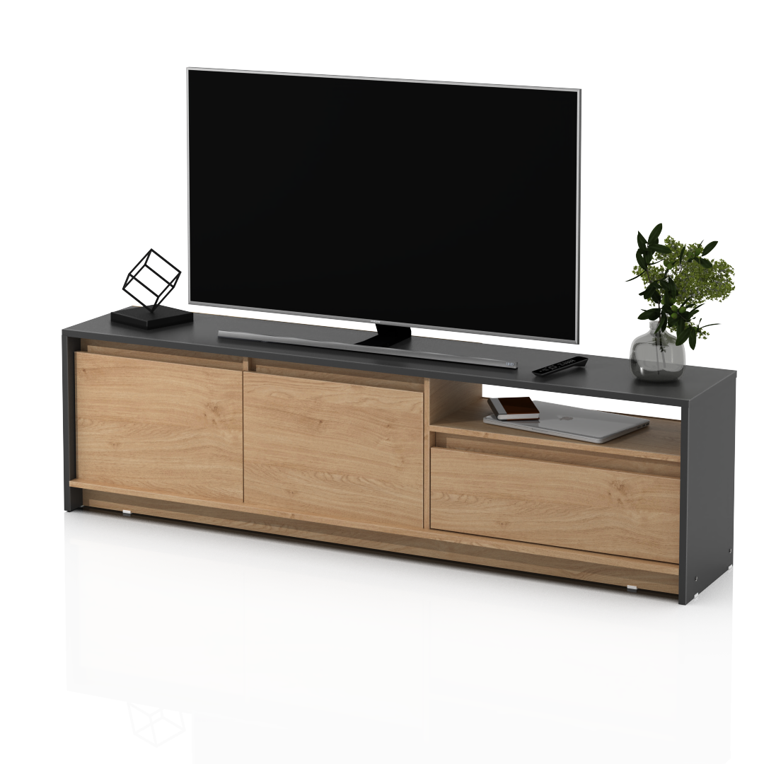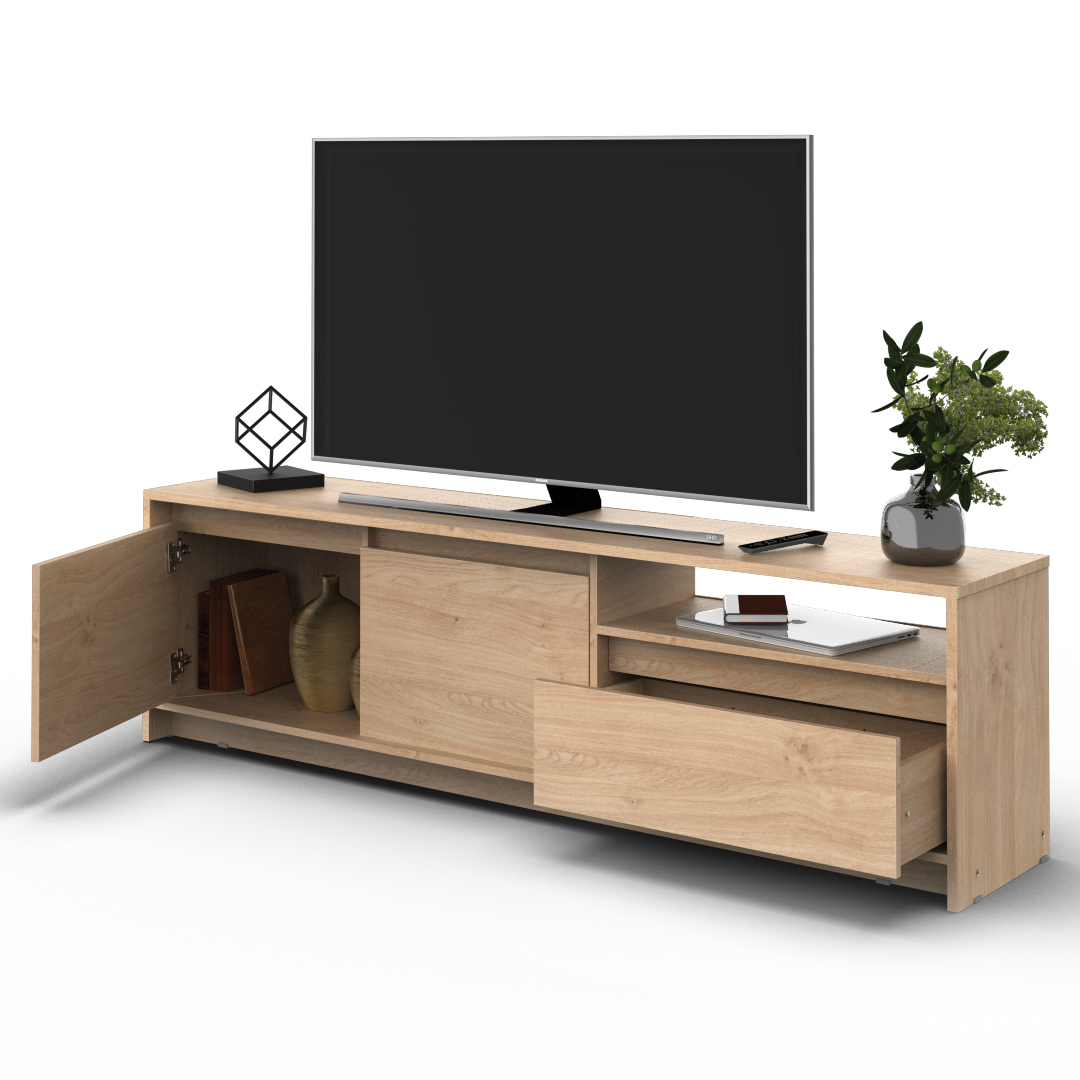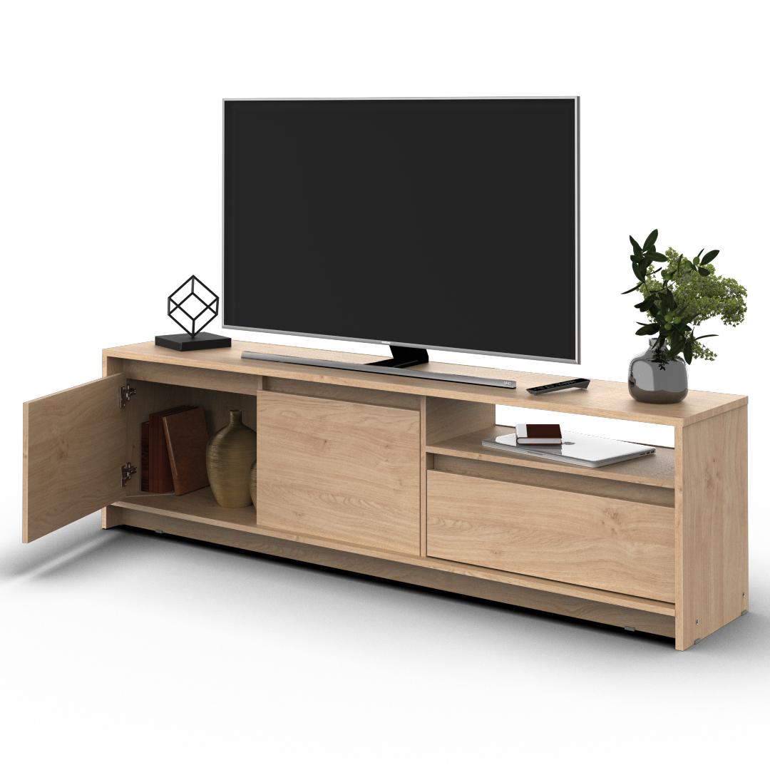 El Rack de TV Niza cuenta con un diseño moderno de estructura sólida construido en melamina de 15 milímetros.