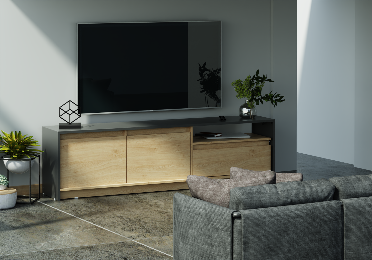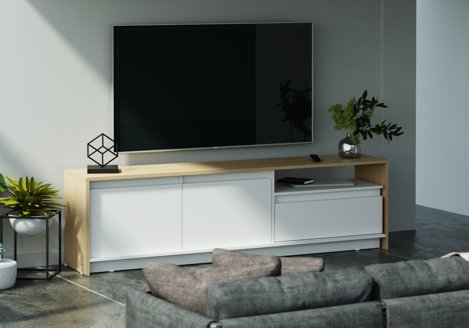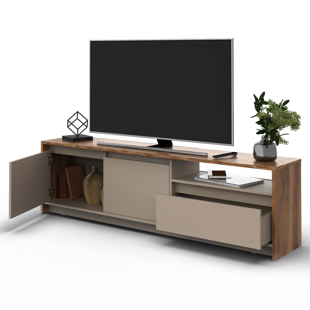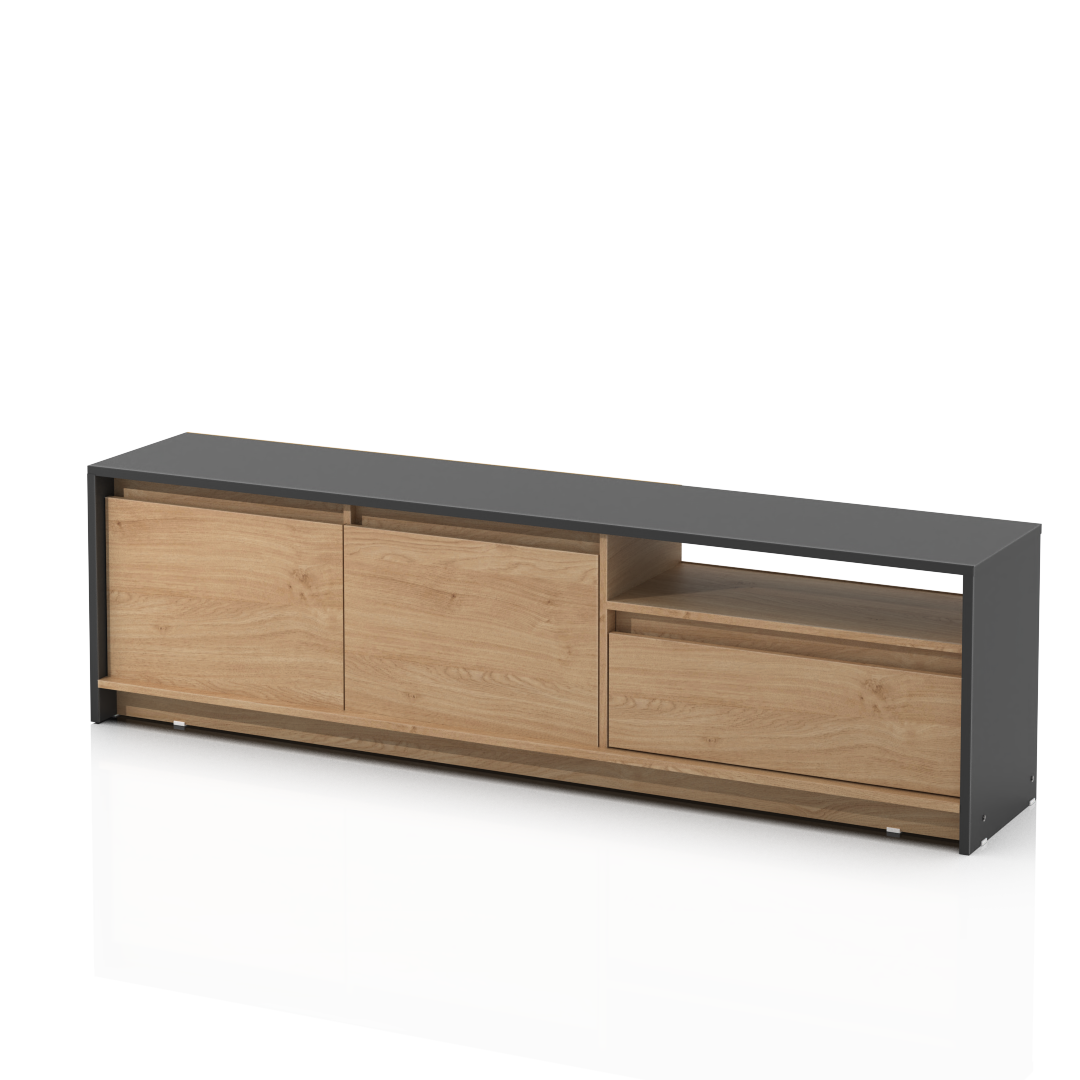 El Rack de TV Niza cuenta con un diseño moderno de estructura sólida construido en melamina de 15 milímetros.