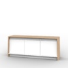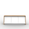 Cuenta con cuatro espacios de guardado, dos puertas que ofrecen una gran capacidad de almacenamiento una cajonera y un espacio abierto.